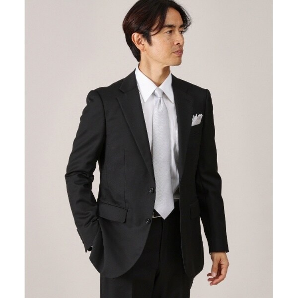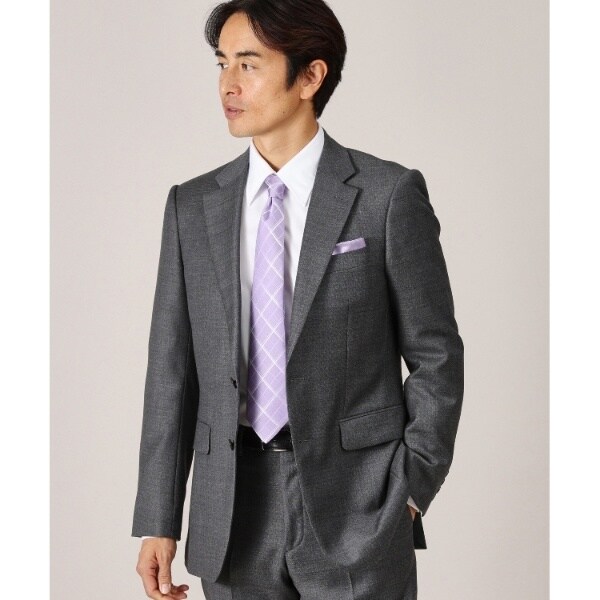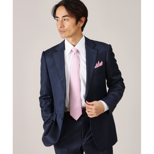 ネクタイと合わせた色のチーフは、光沢のある綾組織無地柄。