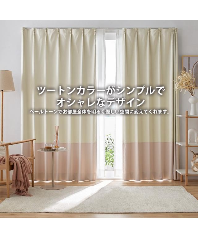 ツートンカラーのおしゃれなカーテンでお部屋を優しい空間へ。 アイボリーと淡い色味のピンク・グレー・ベージュをそれぞれ組み合わせたカーテンは、韓国インテリアに合わせやすくシンプル&ナチュラルなお部屋作りができます。 木調家具やフラワー、グリーンを取り入れてナチュラルなお部屋に、くすみカラーのファブリックでまとめて大人かわいいお部屋に。自分好みのお部屋をづくりを楽しんでください。 このページの商品は既製サイズです。