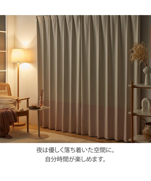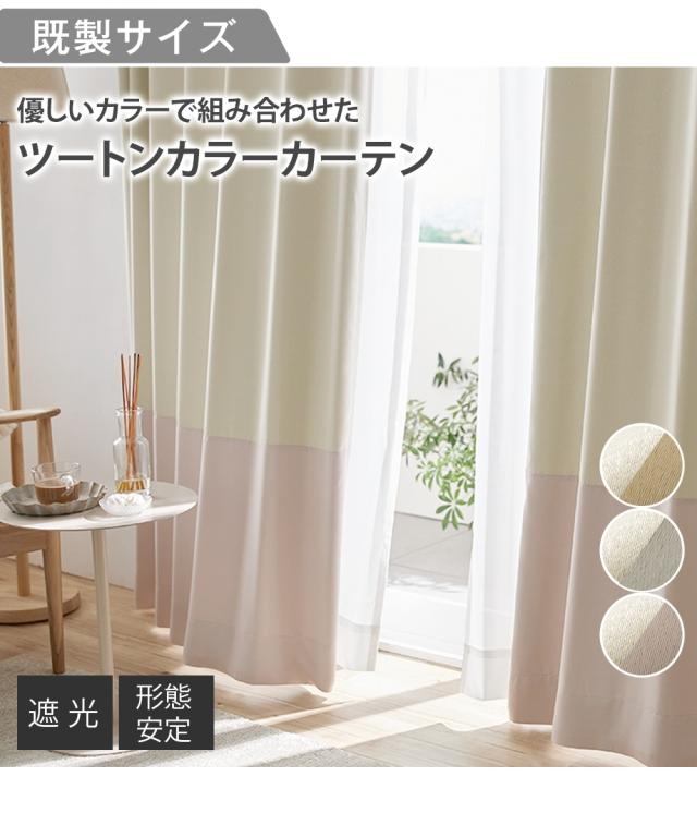ツートンカラーのおしゃれなカーテンでお部屋を優しい空間へ。 アイボリーと淡い色味のピンク・グレー・ベージュをそれぞれ組み合わせたカーテンは、韓国インテリアに合わせやすくシンプル&ナチュラルなお部屋作りができます。 木調家具やフラワー、グリーンを取り入れてナチュラルなお部屋に、くすみカラーのファブリックでまとめて大人かわいいお部屋に。自分好みのお部屋をづくりを楽しんでください。 このページの商品は既製サイズです。
