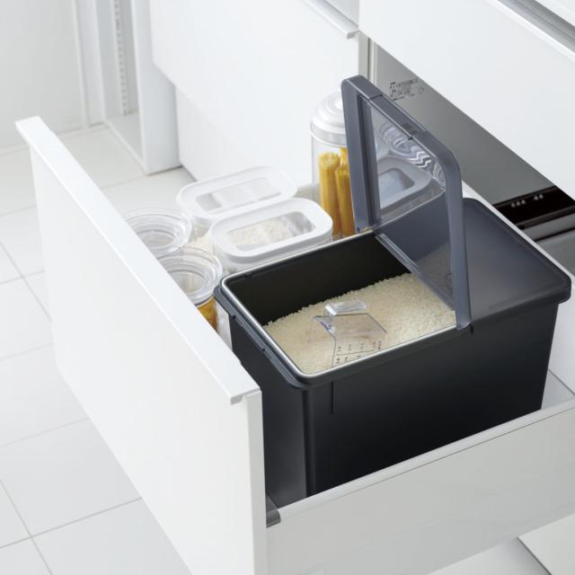 冷蔵庫の野菜室やシンク下の引出しに収まるサイズ感です。冷暗所で保存できるので、よりお米の鮮度を保つことができます。
