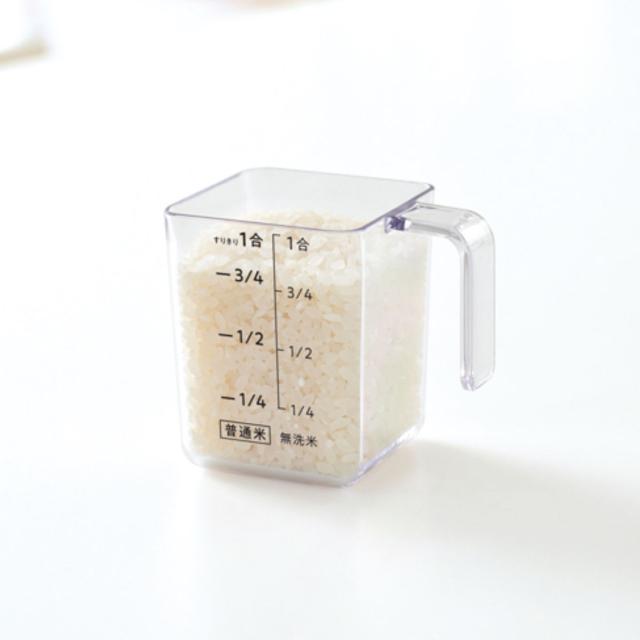 無洗米も測れる、便利な計量カップ付きです。