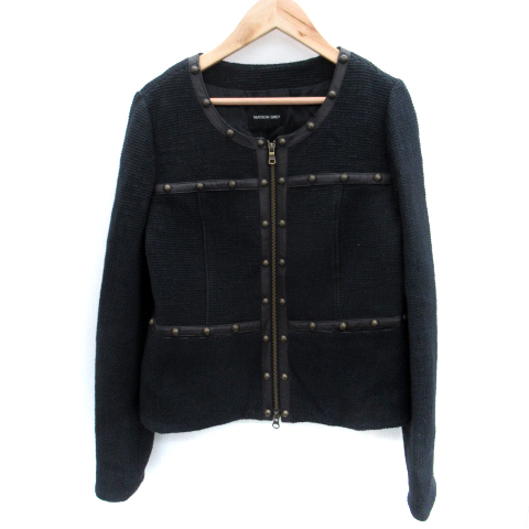【中古】メイソングレイ MAYSON GREY ノーカラージャケット ミドル丈 スタッズ 2 黒 ブラック /SM6 レディース