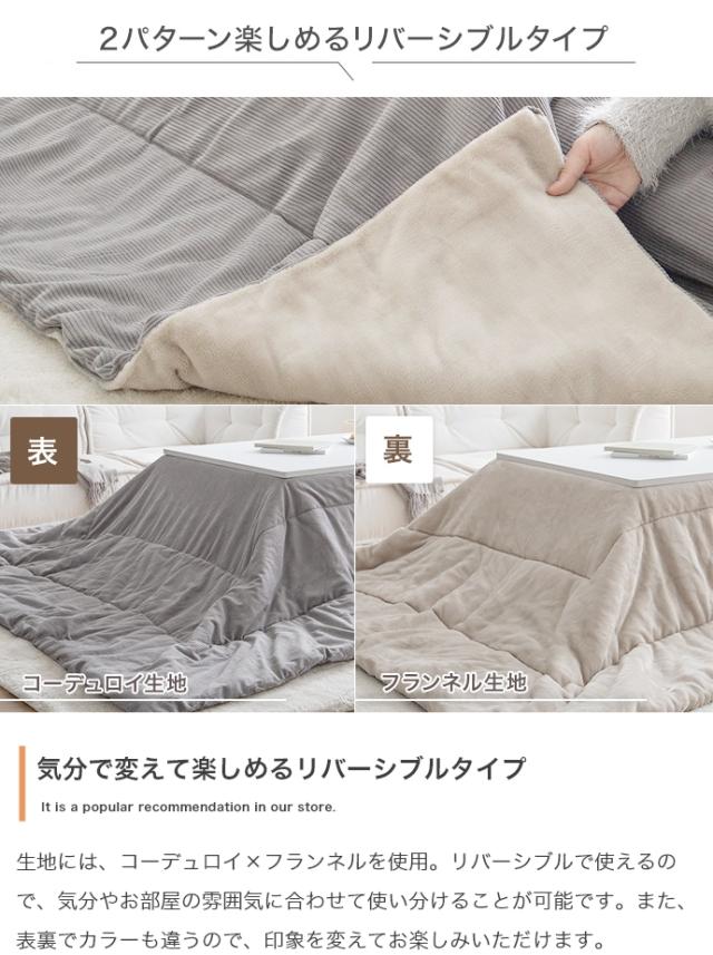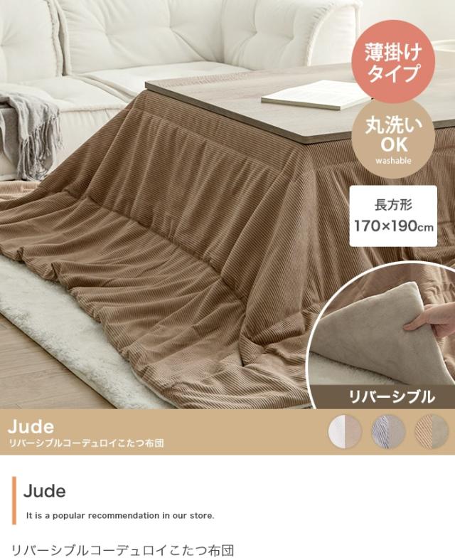 こたつ布団 長方形 170x190cm 薄掛け リバーシブルコーデュロイこたつ布団 Jude(ジュード) 3色対応 コタツ布団 おしゃれ 省スペース 単品 こたつ掛け布団 洗える ウォッシャブル フランネル シンプル 一人暮らし