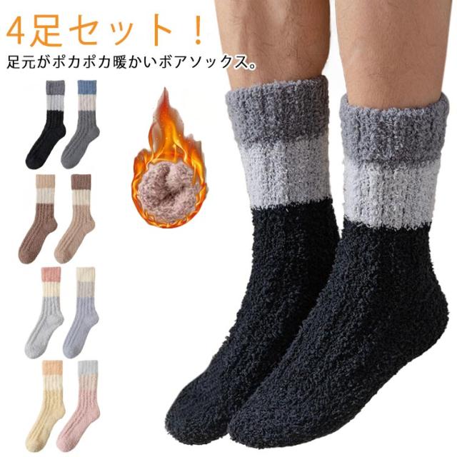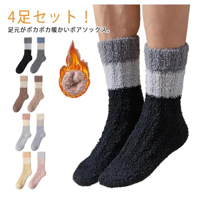 靴下 ルームソックス あったか靴下 ボア モコモコ靴下 ふわふわ 4足セット 厚手 フリース 4足セット 暖かい あったか 冷え取り 冷え防止 防寒 ソックス 滑り止め ルームシューズ レディース メンズ 男女兼用 ボア ギフト プレゼント