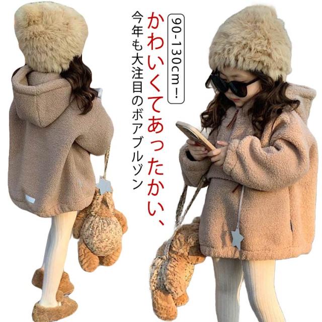 防寒 フード付きボアジャケット 秋冬服 子供 キッズ ベビー服 女の子 女の子 ボア ジャケット ジップブルゾン あったかい ボアジャケット 裏起毛 秋 冬 もこもこ 防寒着 暖かい 保温 コート トップス アウター 春秋冬 通学 通園 90 100 110 120 130