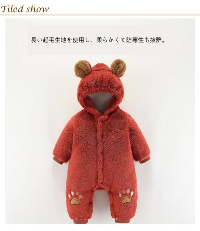 防寒 おしゃれ くまさん 長袖 ふわふわ 着ぐるみ ジャンプスーツ ロンパース モコモコ 赤ちゃん 男の子 ロンパース カバーオール 女の子 厚手 新生児 肌着 もこもこ パジャマ 前開き 冬 冬用 ベビー服 冬ロンパース 暖かい 可愛い 59 66 73 80 90 出産祝い プレゼント