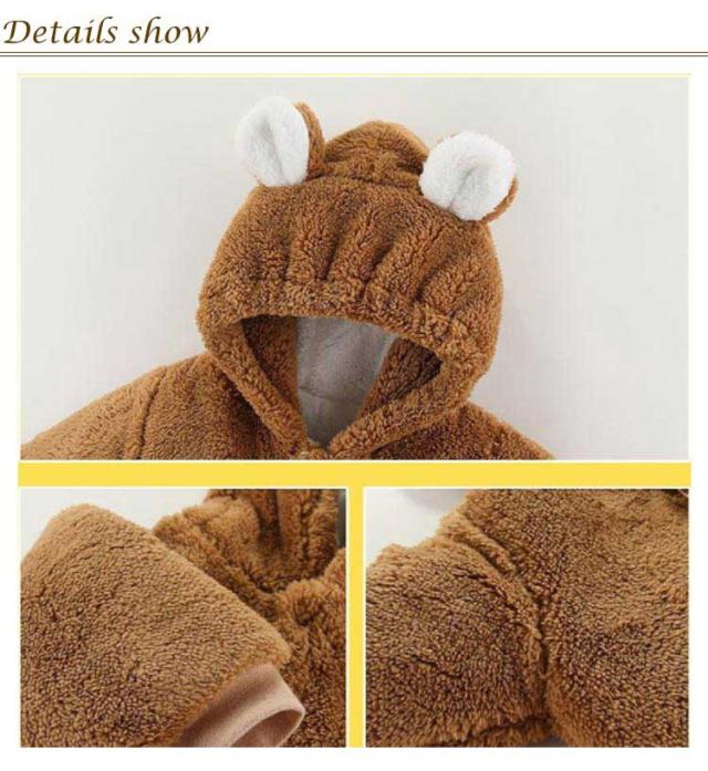 | 59-90cm!程よい厚みで、着ぐるみみたいなモコモコロンパースです。 長い起毛生地を使用し、柔らかくて防寒性も抜群。 可愛さと機能性を兼ね備え、男女問わず使える可愛くオシャレなデザインです。 首元から足元までにボタンで前開きロンパース。脱ぎ着しやすいし、オムツの着替えも便利。 日常着、パジャマ、部屋着、出産お祝いやプレゼントなどとしてもお勧め。記念日や年賀状などの写真撮影にもぴったり | |