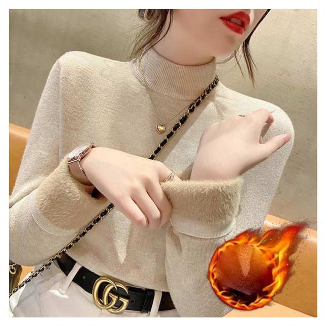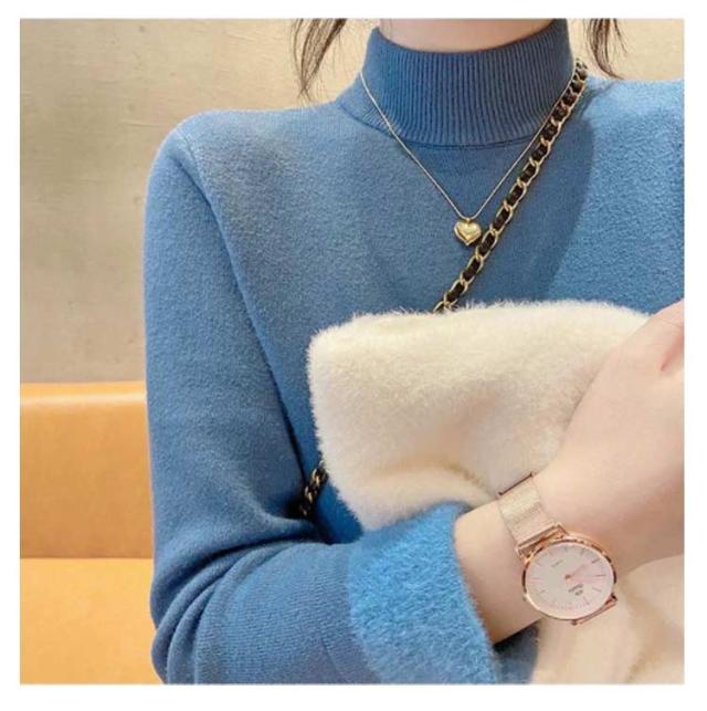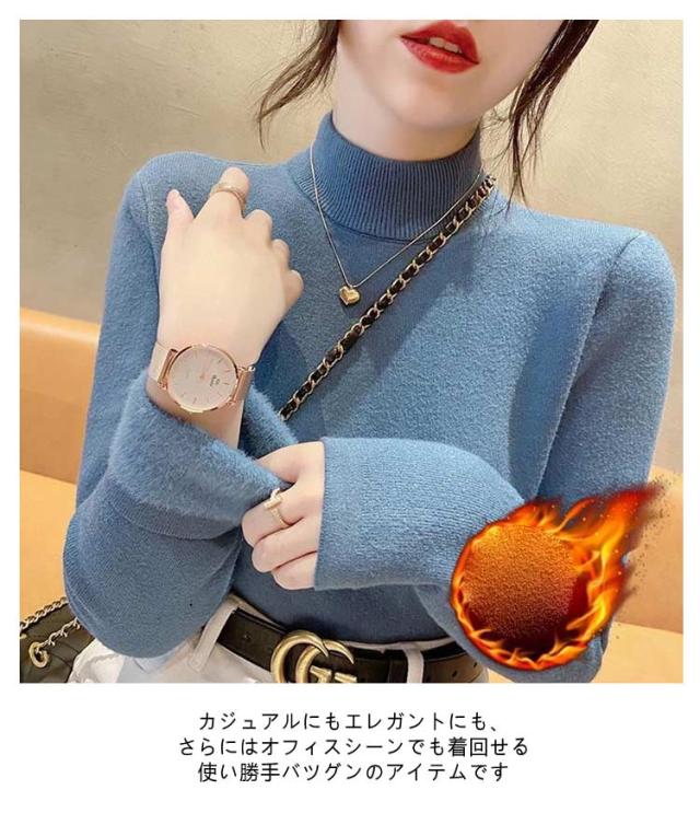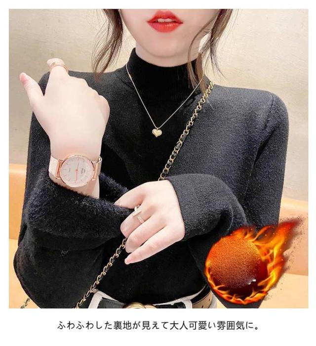 ハイネック 暖かい裏シャギーハイネックプルオーバー トップス ニットセーター 裏起毛タートルネックカットソー 長袖 ニットセーター トップス インナー 裏起毛 暖か セーター 厚手 リブ ニット レディース 無地 セーター ハイネック 冷え症 HOT 温かい 秋冬