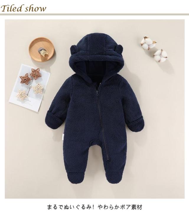 長袖 ロンパース ベビー キッズ ベビー服 フード付き プレゼント アウター ジャンプスーツ カバーオール 着ぐるみ ベビージャンプスーツ 子供服 ボア 防寒 冬 裏ボア 赤ちゃん 出産祝い ロンパース 着ぐるみ 男の子 秋冬 あったか かわいい 服 59 66 73 80