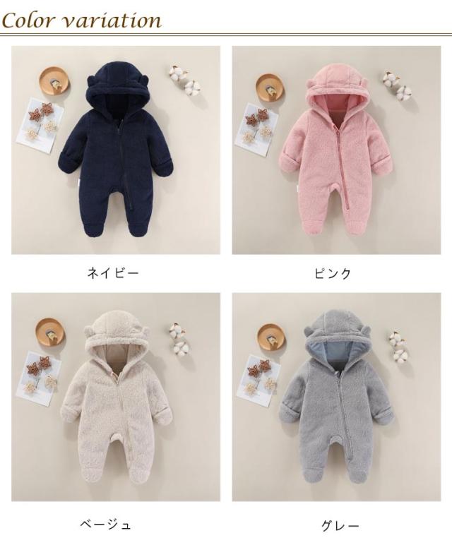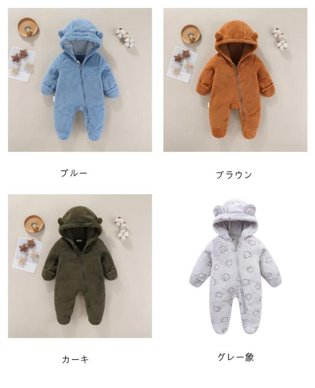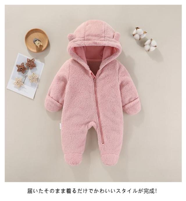 キッズ 裏ボア ロンパース ベビージャンプスーツ 冬 フード付き アウター ベビー服 ジャンプスーツ 着ぐるみ ベビー 長袖 子供服 かわいい 防寒 女の子 男の子 プレゼント 出産祝い カバーオール 着ぐるみ ボア 秋冬 あったか 服 ロンパース 59 66 73 80