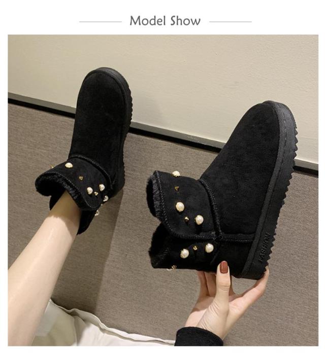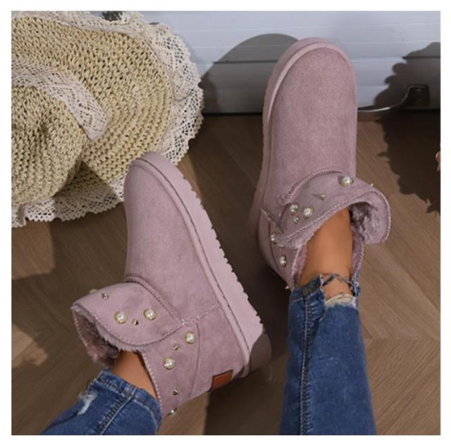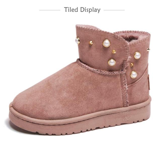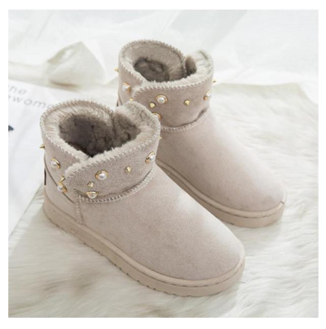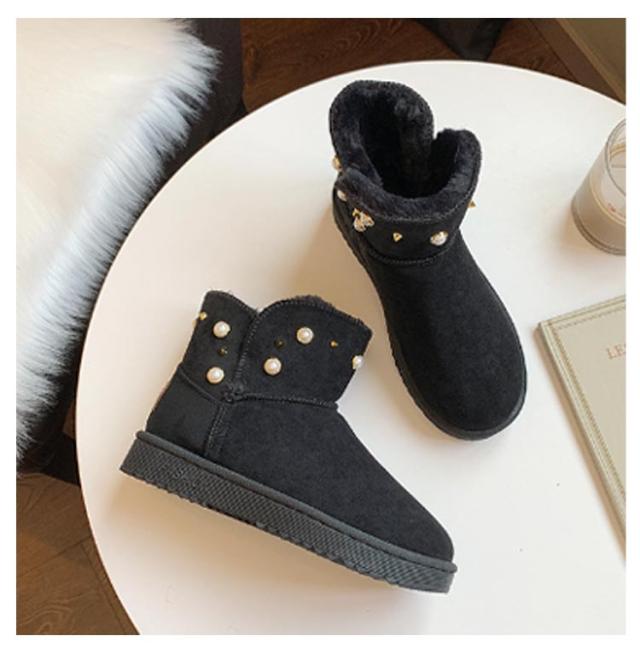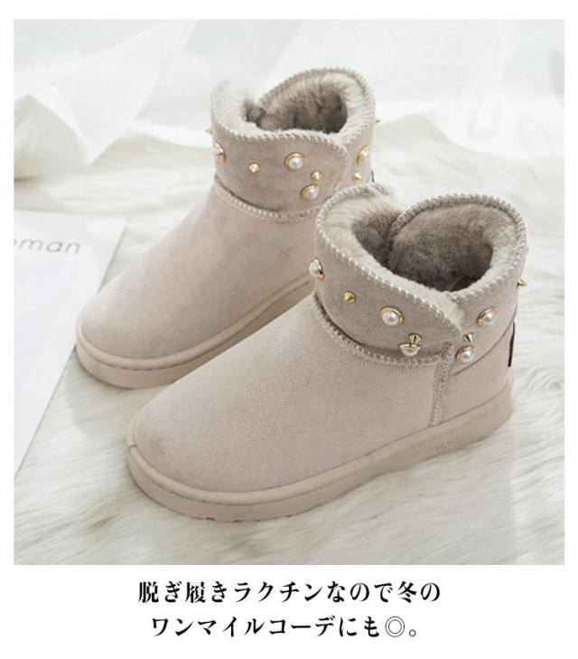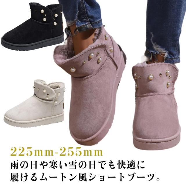 防寒 ムートン風 パール スノーブーツ スノーシューズ 送料無料 ショートブーツ フラットブーツ フェイクムートン ブーツ スリッポン式 保温 レディース 冬用 履きやすい 裏ボア 防寒靴 パール 女性用