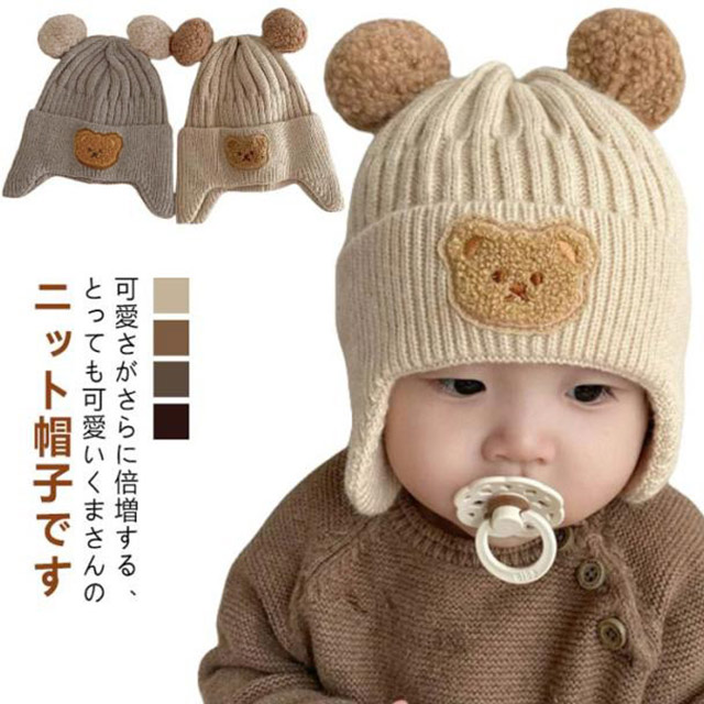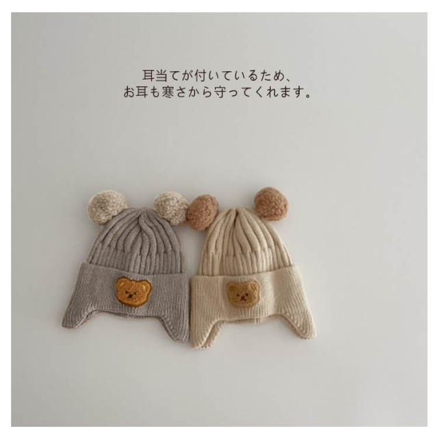 くま 帽子 ニット帽 赤ちゃん ベビー 防寒帽子 ニットキャップ 赤ちゃん くま耳 耳付き 耳保護 暖かい 保温 お散歩 寒さ対策 お出かけ 防寒 春 秋 冬 新生児 かわいい 子供 こども ベビー帽子 6ヶ月~3歳 可愛い 保育園 クリスマス おしゃれ