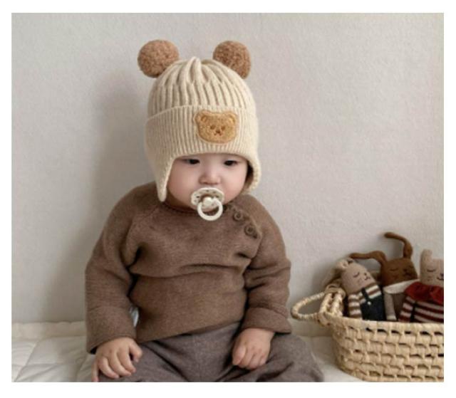 | 可愛さがさらに倍増する、とっても可愛いくまさんのニット帽子です。 柔らかなニットで、赤ちゃんの頭を優しく包みます。 耳当てが付いているため、お耳も寒さから守ってくれます。 あご紐を付けていませんので、安全にお使いいただけます。 これ1つで、あっという間におしゃれ感アップ! | |