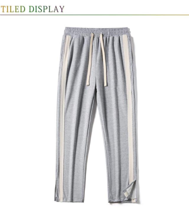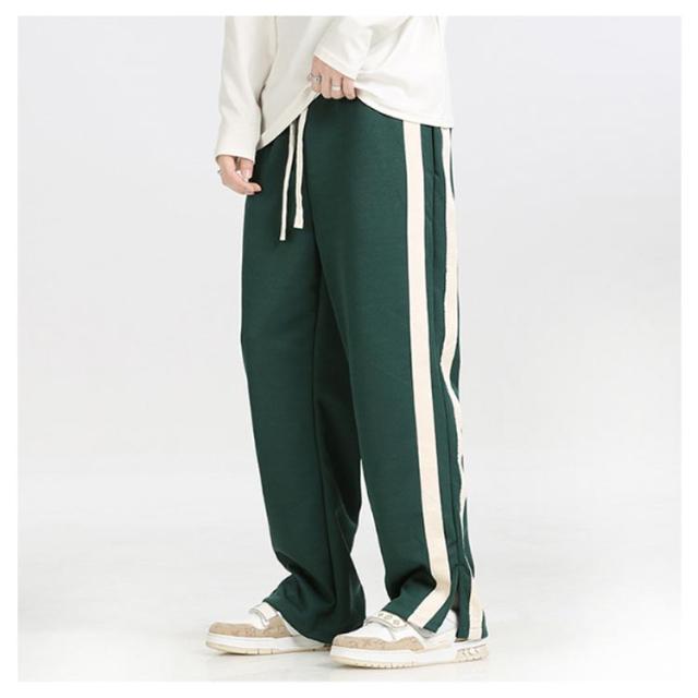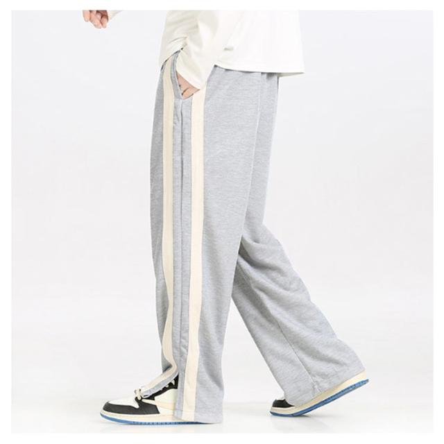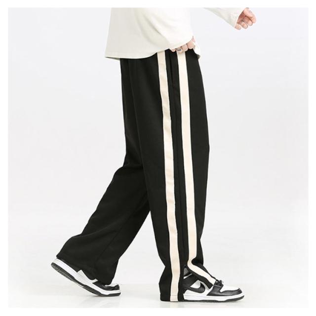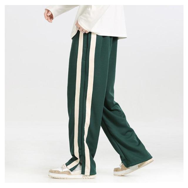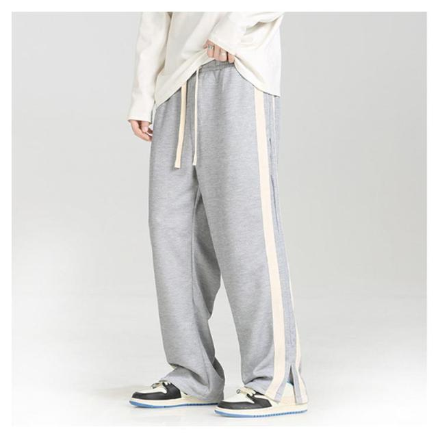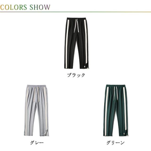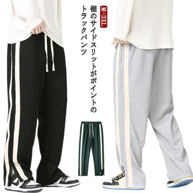 トラックパンツ スウェットパンツ メンズ サイドライン 裾スリット ジャージ パンツ ラインパンツ ストレートパンツ ウェストゴム イージーパンツ ポケットあり ストリート系 ダンス系 ヒップホップ系 スポーツミックス カジュアル 春 秋