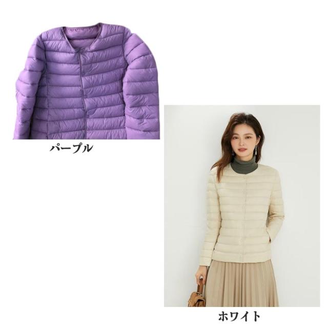 軽量 インナージャケット ノーカラー 2way ダウン風 重ね着 Vネック ショート丈 ノーカラー 暖かい レディース トップス 薄手 重ね着 ジャケット 中綿コート あったか 秋冬 防寒 防風 大人 女性 無地 シンプル 通勤 通学 プレゼント ギフト