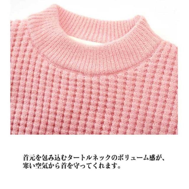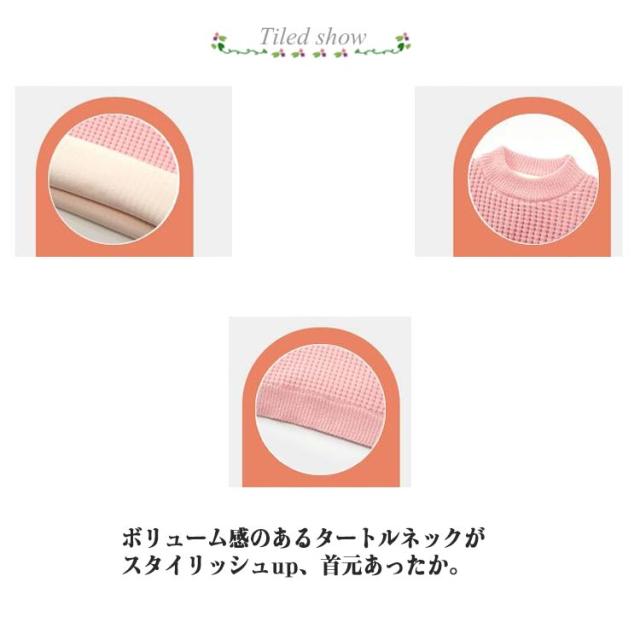 | 100-140cm!チクチクしないあったかニット ボリューム感のあるタートルネックがスタイリッシュup、首元あったか。 柔らかで肌触り優しい高品質生地で、チクチクせず、快適な着心地◎ ゆったりとした着心地、伸縮性もあり、動きやすい。 首元を包み込むタートルネックのボリューム感が、寒い空気から首を守ってくれます。 | |