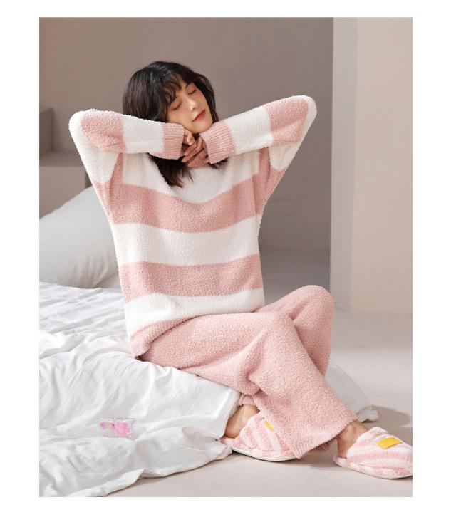 ルームウェア パジャマ 部屋着 上下セット レディース セットアップ リブモールニット もこもこ トップスボトムス 外出 可愛い