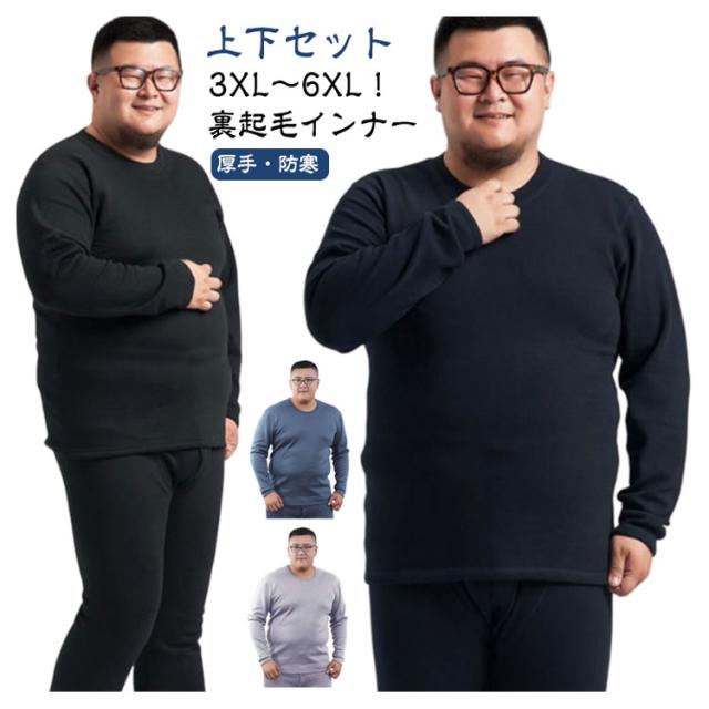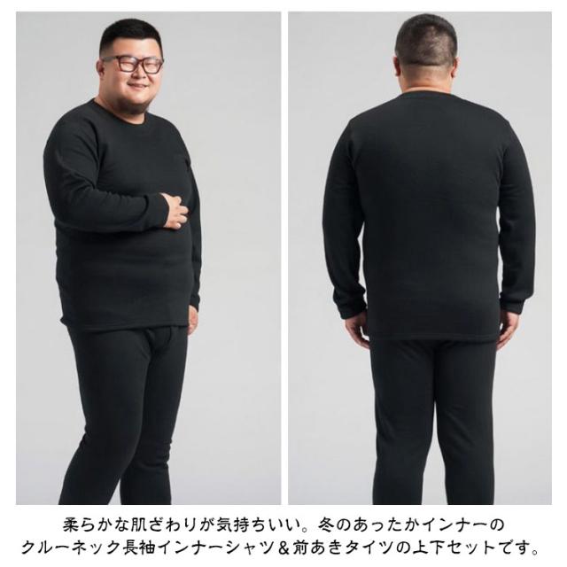 あったかインナー インナーウェア 長袖インナー 上下セット ヒートテック 極暖 防寒 厚手 大きいサイズ 肌着 メンズ インナーシャツ 前開き レギンス 吸湿発熱 保温インナー メンズ下着 クルーネック 丸首 3XL〜6XL!裏起毛 秋冬