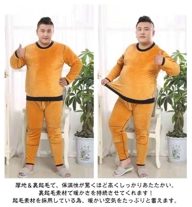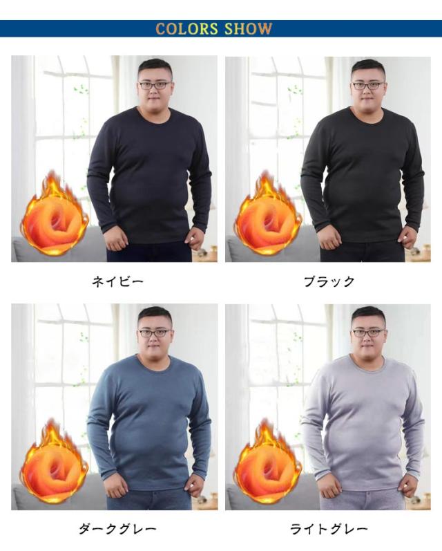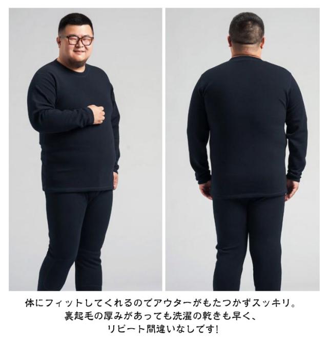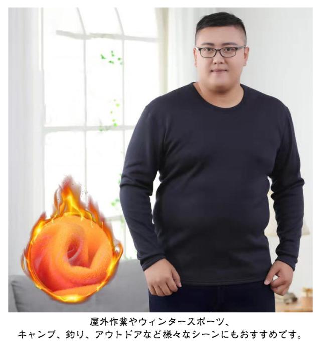 | 【3XL〜6XL!裏起毛インナー】【上下セット】【厚手・防寒】 柔らかな肌ざわりが気持ちいい。冬のあったかインナーのクルーネック長袖インナーシャツ&前あきタイツの上下セットです。 厚地&裏起毛で、保温性が驚くほど高くしっかりあたたかい。裏起毛素材で暖かさを持続させてくれます!起毛素材を採用している為、暖かい空気をたっぷりと蓄えます。 高い発熱性と調湿性を持った快適発熱素材を使用。身体から出る湿気を吸湿して発熱し、余分な湿気は逃がしてくれるためサラッとした肌触りが得られます。 体にフィットしてくれるのでアウターがもたつかずスッキリ。裏起毛の厚みがあっても洗濯の乾きも早く、リピート間違いなしです! 屋外作業やウィンタースポーツ、キャンプ、釣り、アウトドアなど様々なシーンにもおすすめです。 | |
