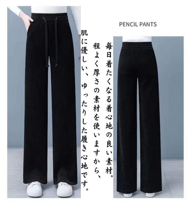 ワイドパンツ コーデュロイ 厚手 パンツ 秋 美脚 冬 ストレートパンツ 春 防寒 暖かい 脚長 肉厚 長ズボン ロングパンツ リブ コーデュロイ 裏起毛 快適 大きいサイズ ウエストゴム ゆったり