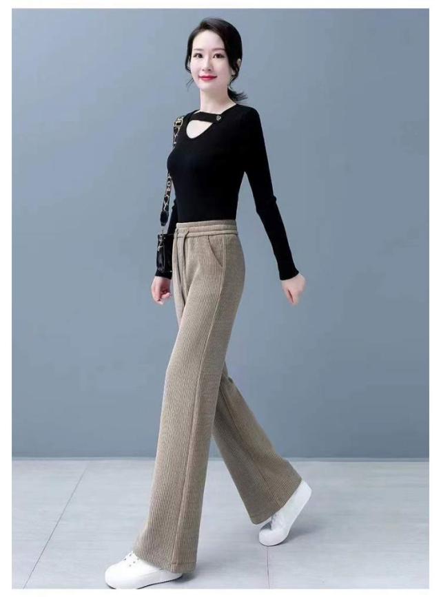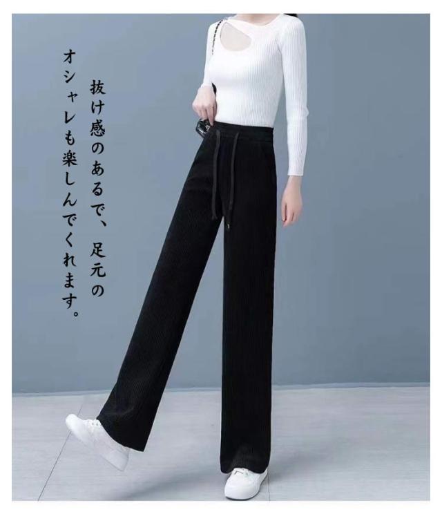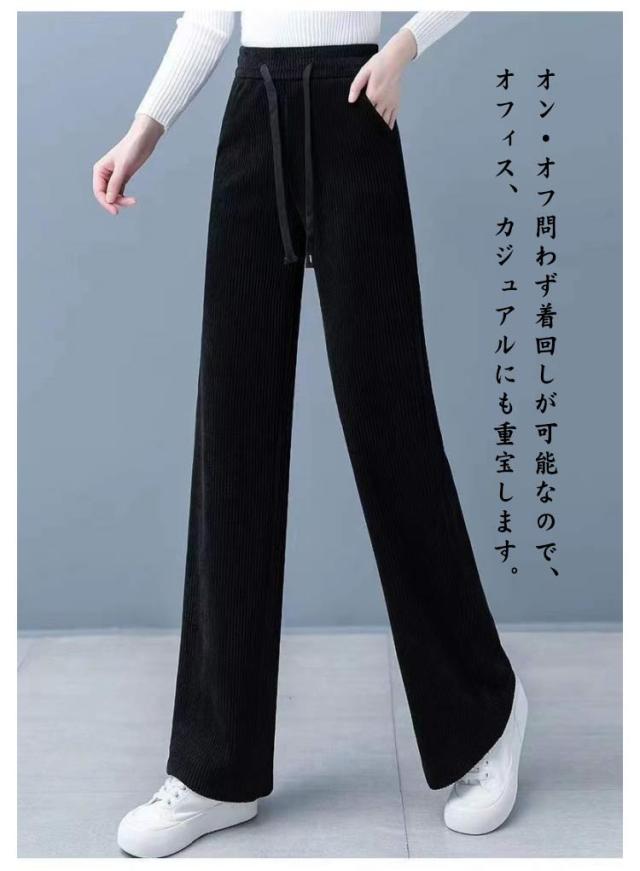 肉厚 長ズボン ストレートパンツ 暖かい コーデュロイ 厚手 パンツ 防寒 春 裏起毛 冬 美脚 ロングパンツ レディース 秋 リブ ワイドパンツ 脚長 快適 大きいサイズ ウエストゴム ゆったり