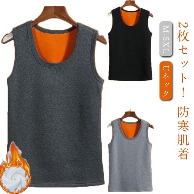 メンズ 袖なし 防寒肌着 2枚セット 裏起毛 タンクトップ ベスト あたたか インナーシャツ 保温 Uネック 暖かい 無地 トップス ルームウェア シンプル 部屋着 防寒 寒さ対策 冬用