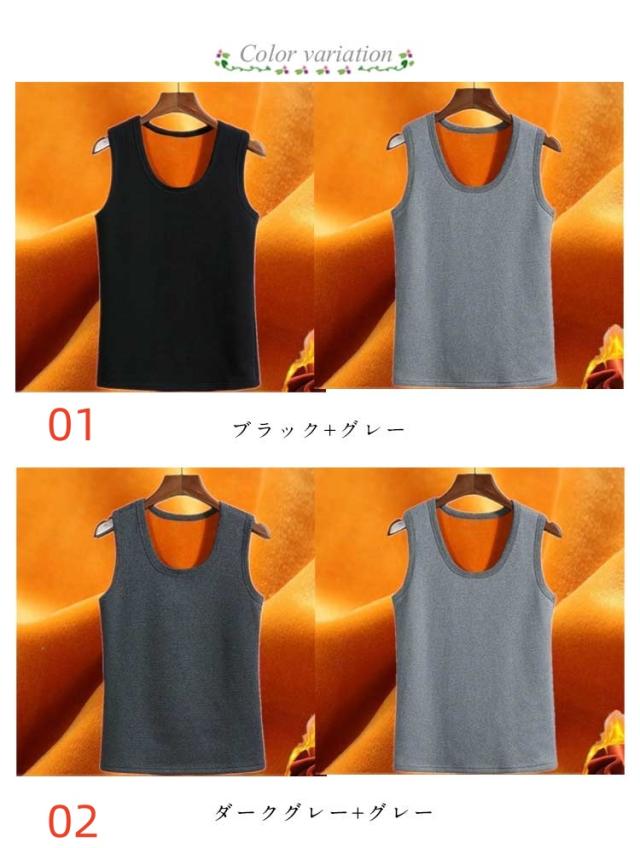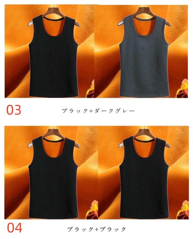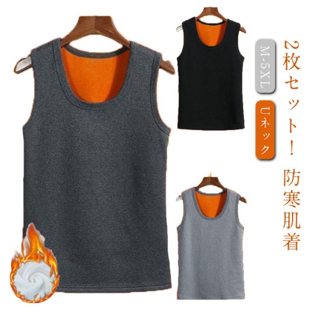 防寒肌着 保温 裏起毛 メンズ シンプル ベスト 袖なし あたたか 2枚セット 暖かい 防寒肌着 タンクトップ 無地 部屋着 ルームウェア トップス Uネック 防寒 寒さ対策 冬用