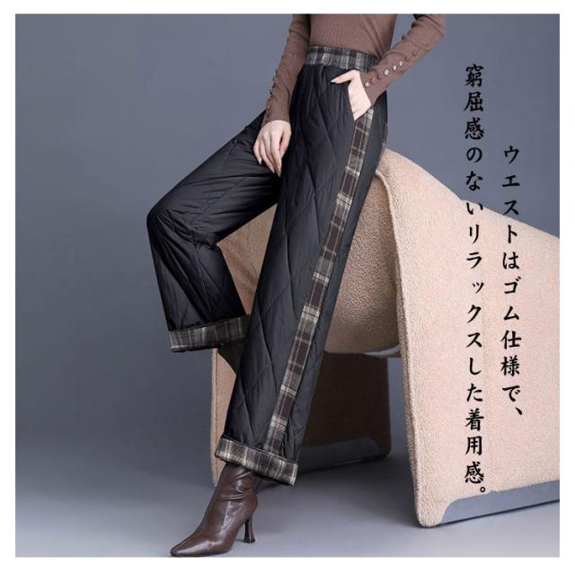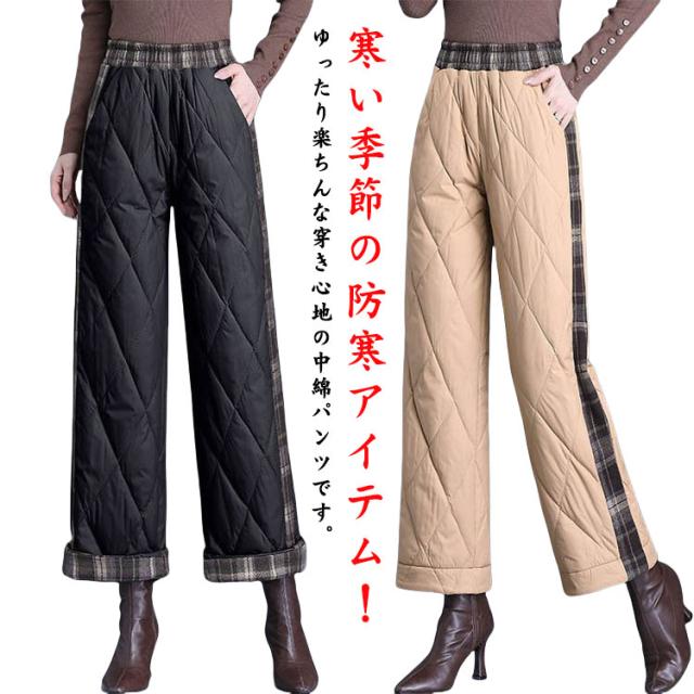 暖かい 防寒パンツ レディース ボトムス 中綿パンツ ウォーキング ストレート ロングパンツ ウエストゴム 軽量 キルティングパンツ 防寒ズボン アウトドア 冬用 パンツ 防寒対策