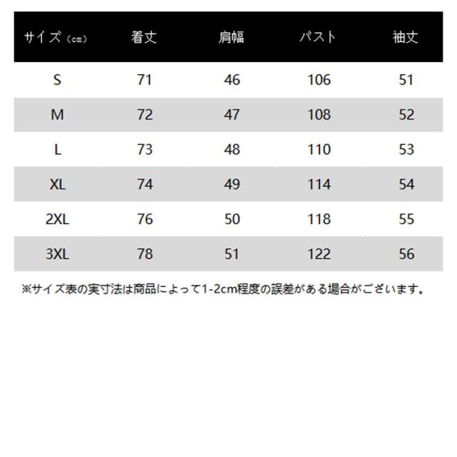 | サイズ | S M L XL 2XL 3XL |