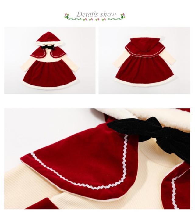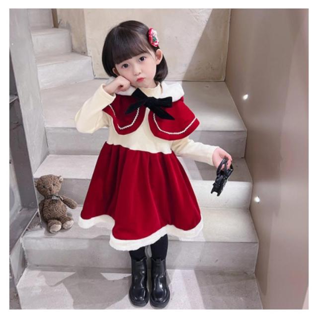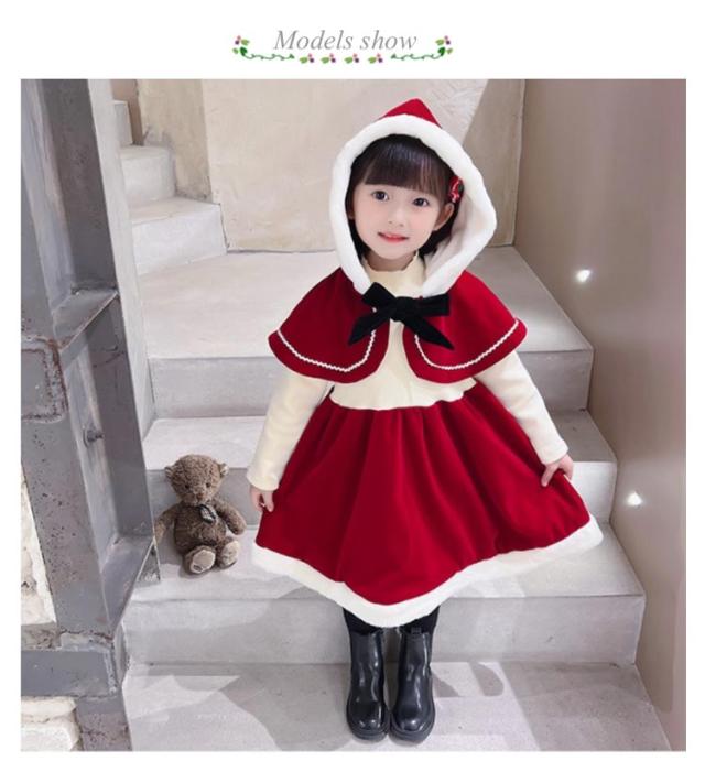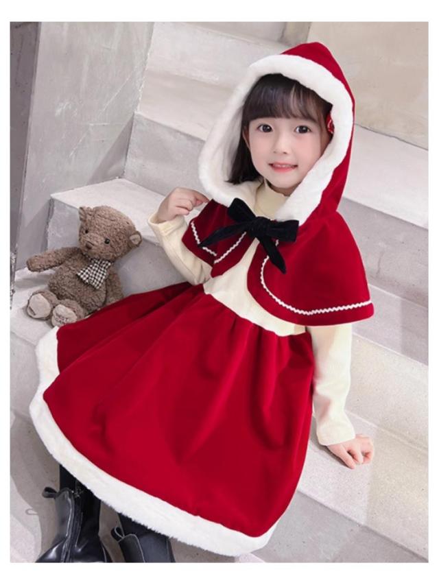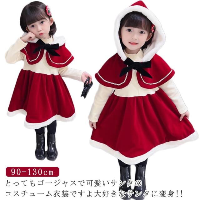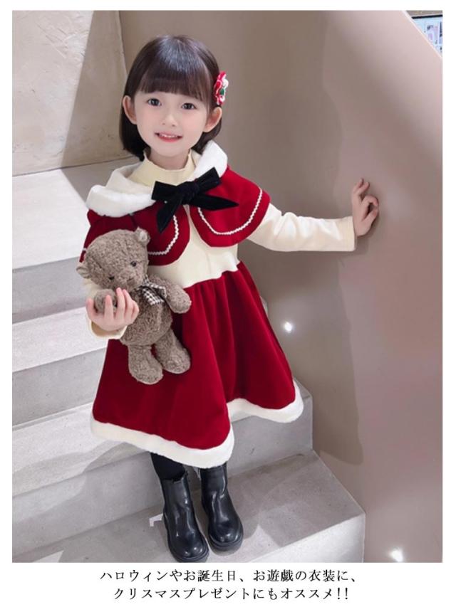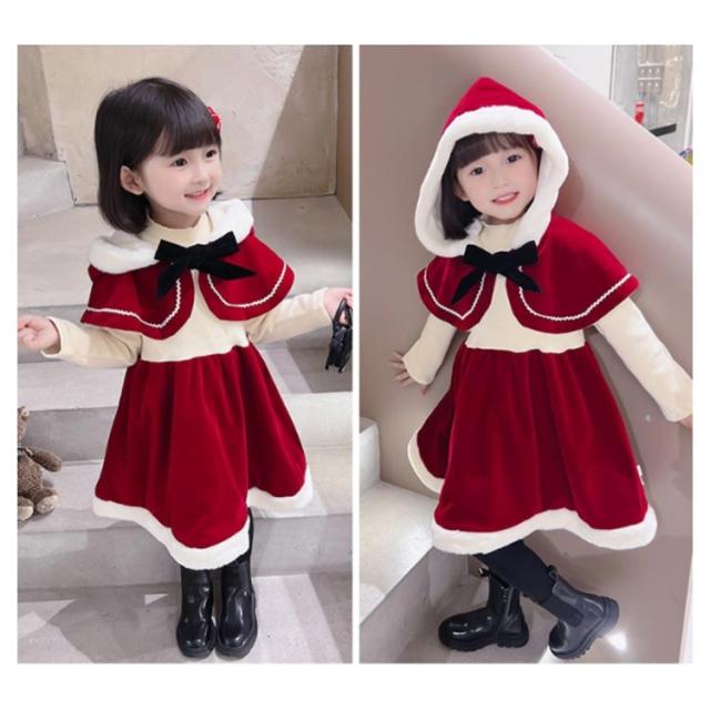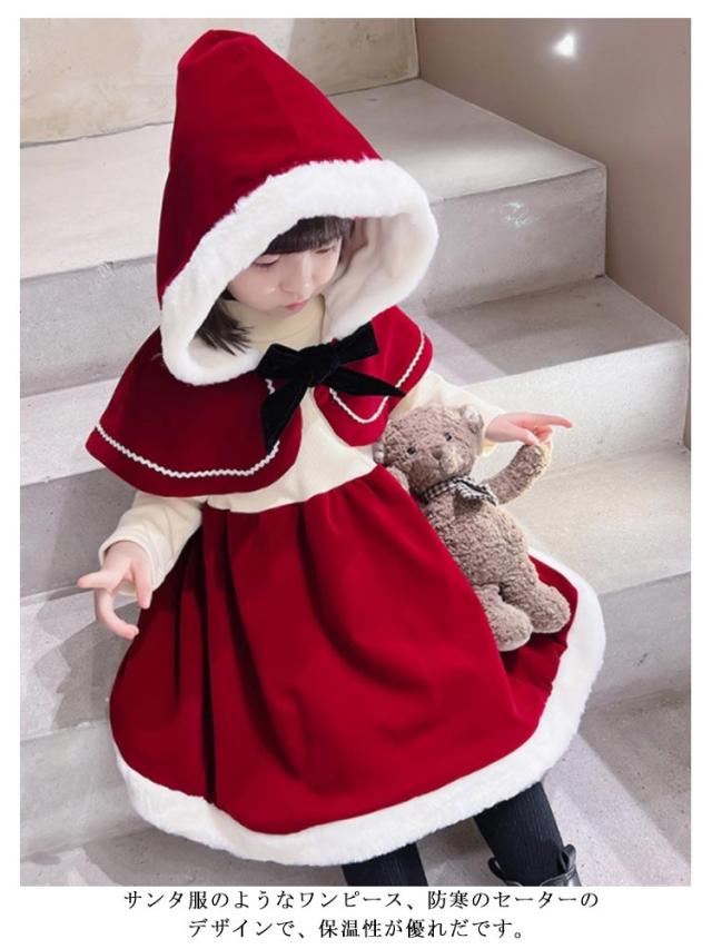 女の子 サンタ服 サンタ 秋冬 クリスマス衣装 子供服 コスプレ ケープ 演出服 防寒 赤ずきんちゃん 2点セット コスチューム 厚手 長袖 ワンピース マント サンタ服 遊園 誕生日