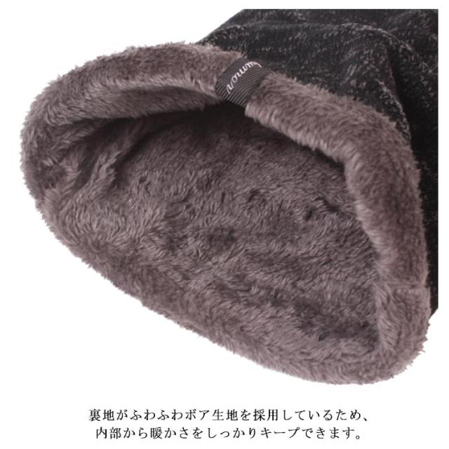 | このニット帽は、防風性も備えています。冷たい風が頭皮に直接触れることなく、寒風が吹き付ける中でも暖かく過ごせ、快適な状態をキープしできます。また、伸縮性があり、頭にぴったりとフィットしてくれるので、風の強い日でも、風の侵入を防ぐことができて、寒い冬の風の影響からしっかりと頭部を守ってくれます。さらに、保温性にも優れているため、温かさを提供し、アウトドアでの使用にも最適な防寒ニット帽です。 【ふわふわ裏起毛】 寒い季節になると、寒さから頭を守るために、ニット帽は不可欠です。裏地がふわふわボア生地を採用しているため、内部から暖かさをしっかりキープできます。これにより、頭部を暖かく保ちながらも通気性を確保し、柔らかな肌触りで快適な着用感を提供します。さらに、厚手のニット生地を使用しているため、防寒性に優れていて、暖かさを逃がさず、寒い気をしっかりと遮ってくれます。寒さからくる不快感を予防し、風邪や凍えるような寒さから頭を守り、安心して快適な冬を過ごしましょう。 【美シルエットと無地の魅力】 防寒ニット帽は、デザインは無地でシンプルながらもおしゃれな仕上がりです。ニットキャップは広い無地をベースにシンプルな英字ロゴをサイドにあしらってファッション感をアップさせました。日常のコーディネートにも取り入れやすく、ファッションアイテムとしてもお楽しみいただけます。美しいシルエットが魅力的に好感を演出します。防寒、保温、防風の機能を備えながらも、おしゃれなデザインで、冬のファッションアイテムとしても注目されています。 | |