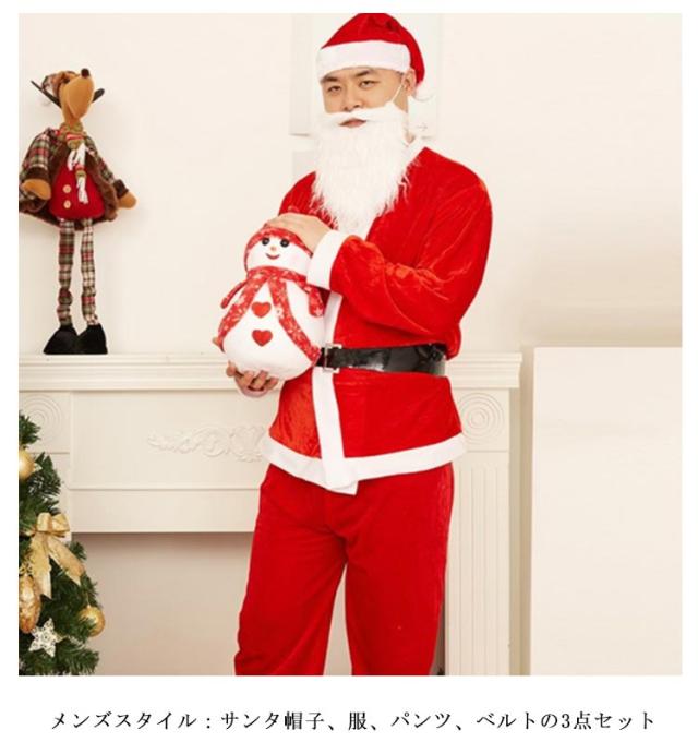 | サンタコスプレ衣装 メンズスタイル:サンタ帽子、服、パンツ、ベルトの3点セット レディース:クリスマスハット、スカート、ベルトの3点セット 適用範囲:クリスマスパフォーマンス、企業イメージ、商品プロモーション、幼稚園など。 | |