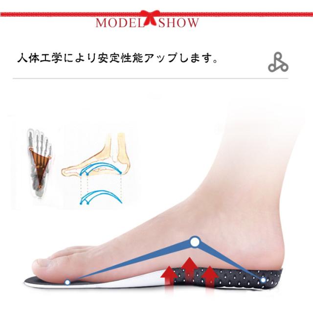 | スポーツインソール 高反発エアクッション カットフリー 筋力サポートの強い運動用インナーソールです。 表面メッシュ仕様、踵部分は深いカップ、シリコンクッションで衝撃吸收。 人体工学により安定性能アップします。 | |