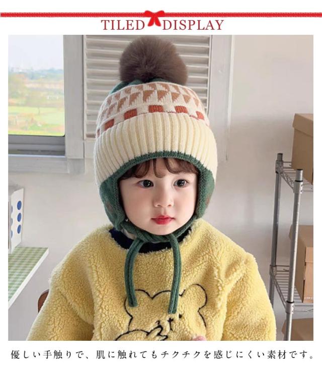 ニット帽 キッズ 耳あて 子供用 帽子 ポンポン付き フライトキャップ風 防寒帽子 ニット キャップ 女の子 冬用ハット あご紐 子供 帽子 耳当て こども ニット帽子 ポンポン 防風 防寒 保温 通気性 カジュアル ふわふわ 防寒対策 恐竜 柔らかい クリスマス プレゼント