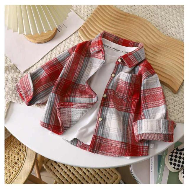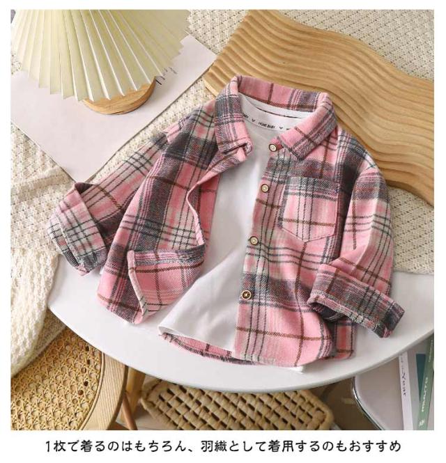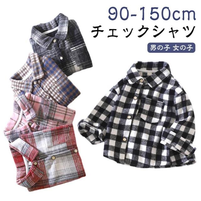 前開き ブラウス チェック柄 女の子 ネルシャツ 男の子 キッズ チェック柄 トップス 長袖シャツ トップス チェックシャツ BIGシルエット ビッグ ビック 秋物 羽織り フランネルシャツ ジュニア 秋服 子供服 韓国子供服 120cm 130cm 140cm