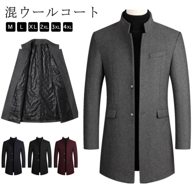 厚手 立ち襟 スタンドカラーコート ビジネス 大きいサイズ フォーマル 暖かい 混ウールコート カジュアル メンズ アウター ウール チェスターコート メンズ 冠婚葬祭 ビジネス ジャケット ラシャコート ロングコート