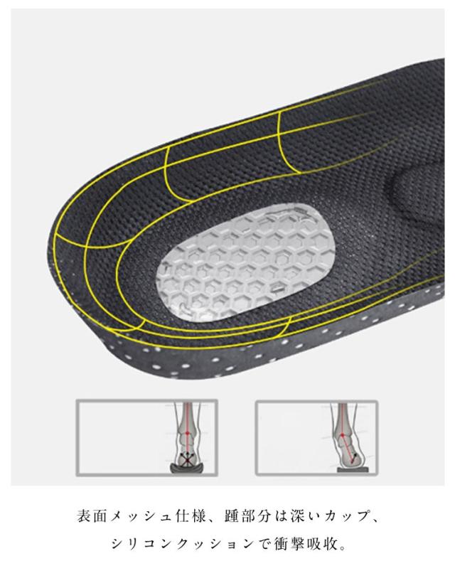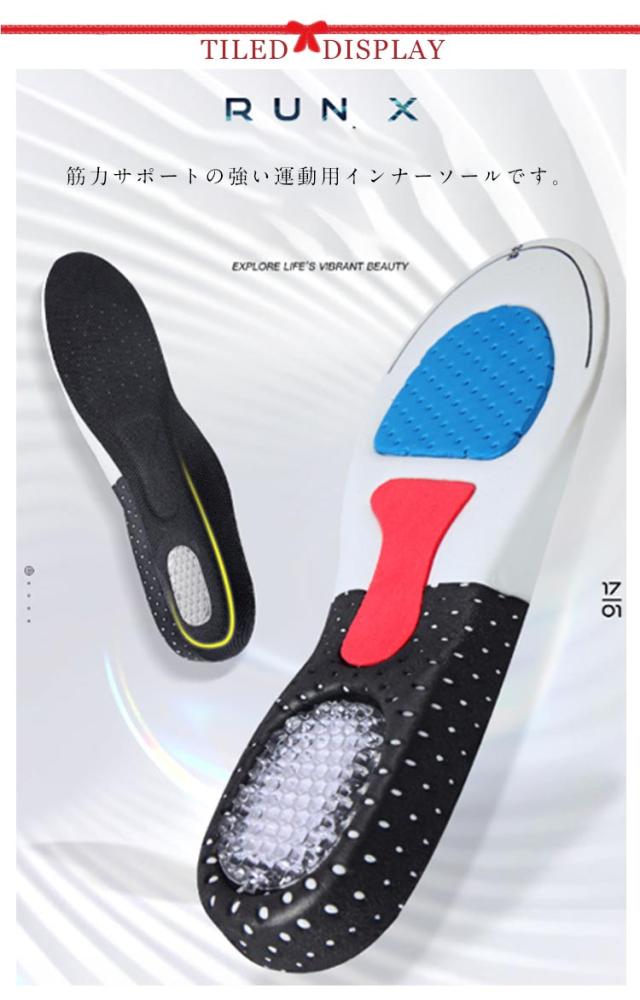 | スポーツインソール 高反発エアクッション 筋力サポートの強い運動用インナーソールです。 表面メッシュ仕様、踵部分は深いカップ、シリコンクッションで衝撃吸收。 人体工学により安定性能アップします。 カットするだけ!簡単にサイズ調整可能。 | |