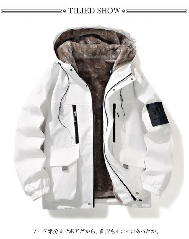裏起毛 防寒アウター ジャケット メンズ 秋物 ウインドブレーカー 暖かい ブルゾン ボアジャケット 撥水 秋冬 あったか ジャンパー ジップアップ フード付き もこもこ 保温 防風 防寒着 裏ボア アウトドア 大きいサイズ 冬服 マウンテンパーカー プレゼント