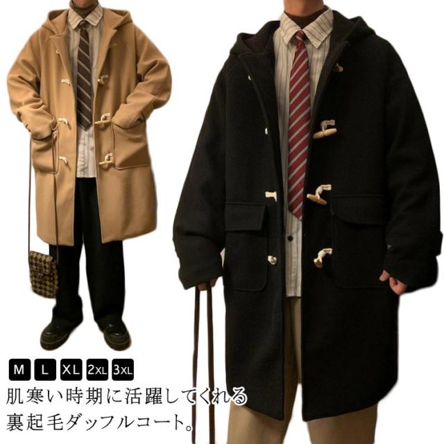 フード付き 裏起毛 メンズ アウター ダッフルコート コート ロングコート 暖かい スクールコート 厚手 防寒コート ダッフルコート あったか シンプル 無地 裏ボア 通勤 男子 学生 通学 冬アウター ビジネス 保温 カジュアル 秋服 冬物 冬服