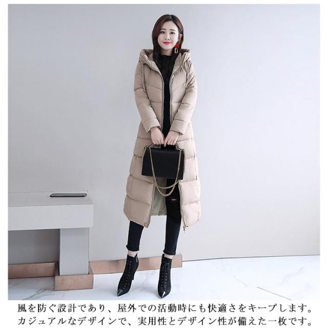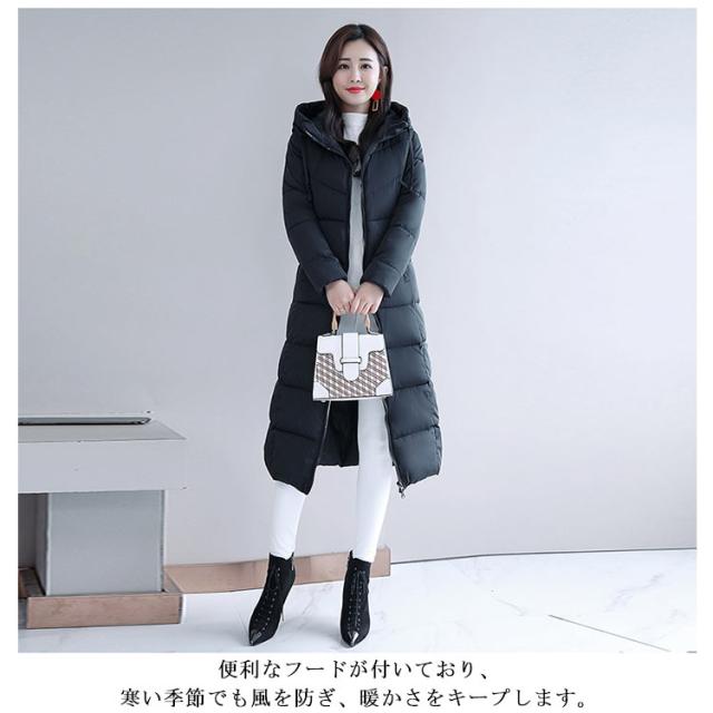 中綿コート レディース フード付き アウター 冬 ロングコート ジャンパー 膝下 ベンチコート 中綿 ジャケット ロング丈 体型カバー 厚手 秋冬 エコダウンコート 無地 軽量 保温 防寒 防風 撥水 冬服 あたっか スリム 着痩せ カジュアル 大人 通勤 おしゃれ ブラック 黒