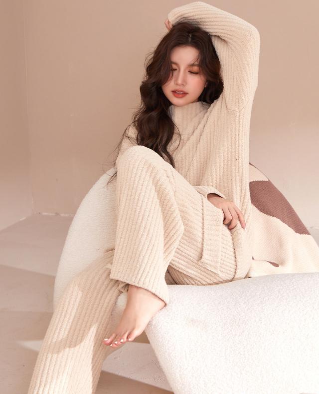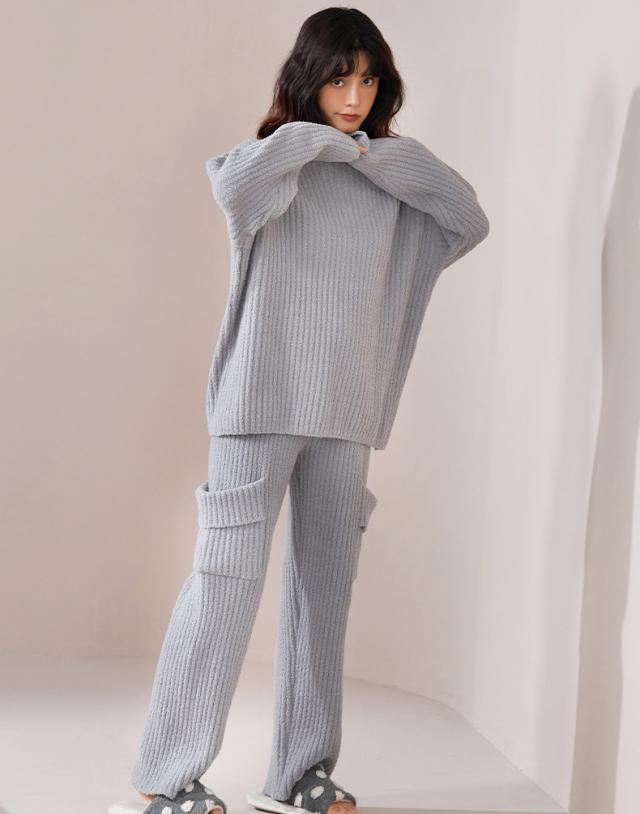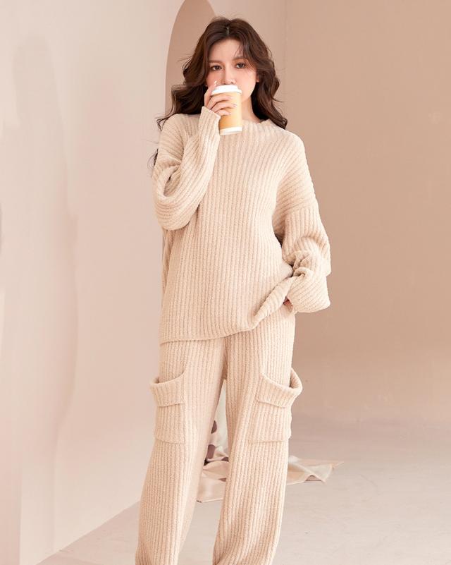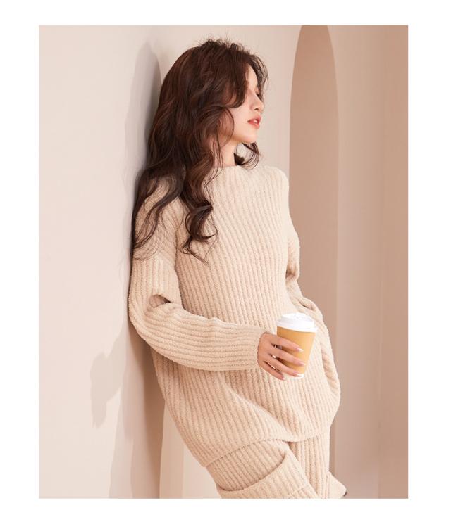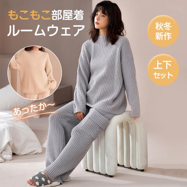 ルームウェア パジャマ 部屋着 上下セット レディース セットアップ リブモールニット もこもこ トップスボトムス 外出 可愛い