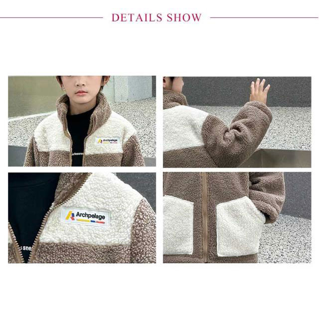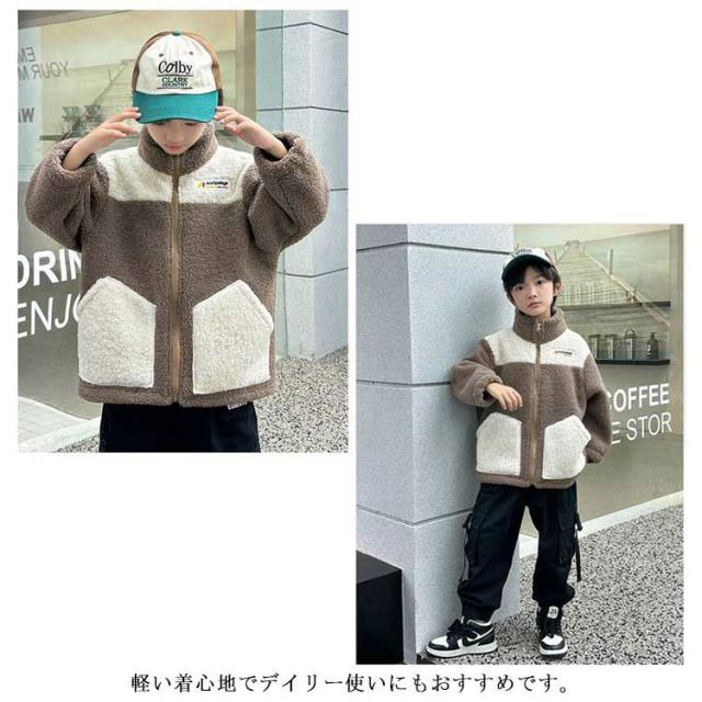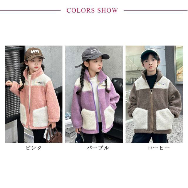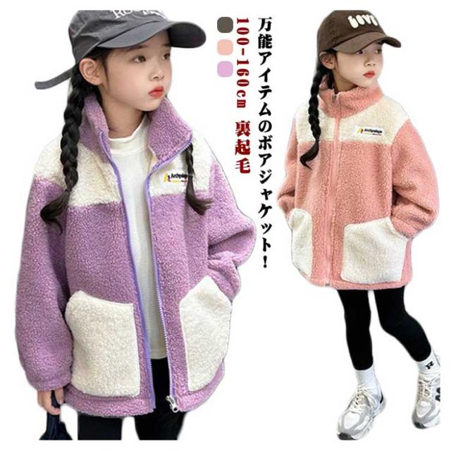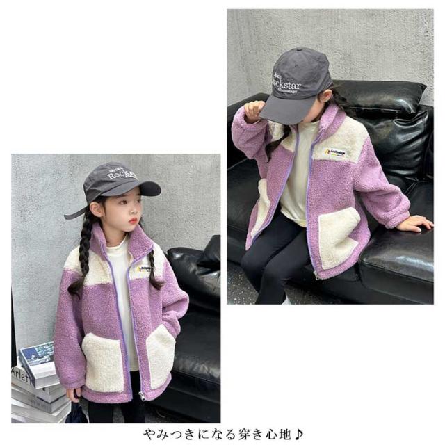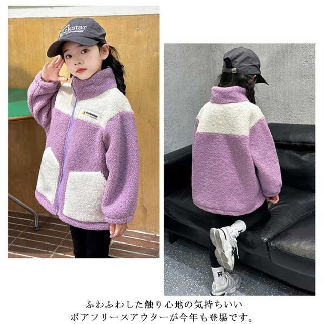 もこもこ アウター キッズ ボアジャケット キッズ 子供 秋冬 裏起毛 フリースジャケット ボアブルゾン ボアパーカー 子供服 ジュニア 女の子 男の子 ふわふわ もこもこ 冬用 アウター 配色 防寒 トップス ジャンパー あったか 保温