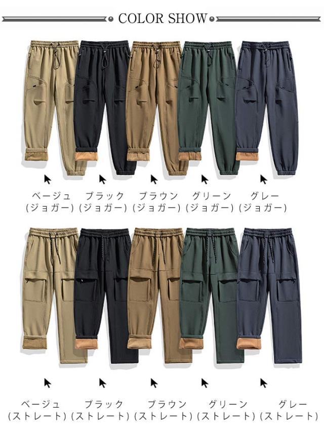| 色 | ブラック(ジョガー) ベージュ(ジョガー) グレー(ジョガー) ブラウン(ジョガー) グリーン(ジョガー) ブラック(ストレート) ベージュ(ストレート) グレー(ストレート) ブラウン(ストレート) グリーン(ストレート) |