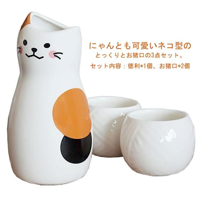 和酒 徳利セット ねこちゃん プレゼント とっくり 猫柄 ぐい呑み 梅酒 おちょこ 可愛い 和風 和式 酒器 日本酒 おちょこ お猪口 焼酎 盃 冷酒 陶磁器 ギフト 誕生日 クリスマス 日常使い