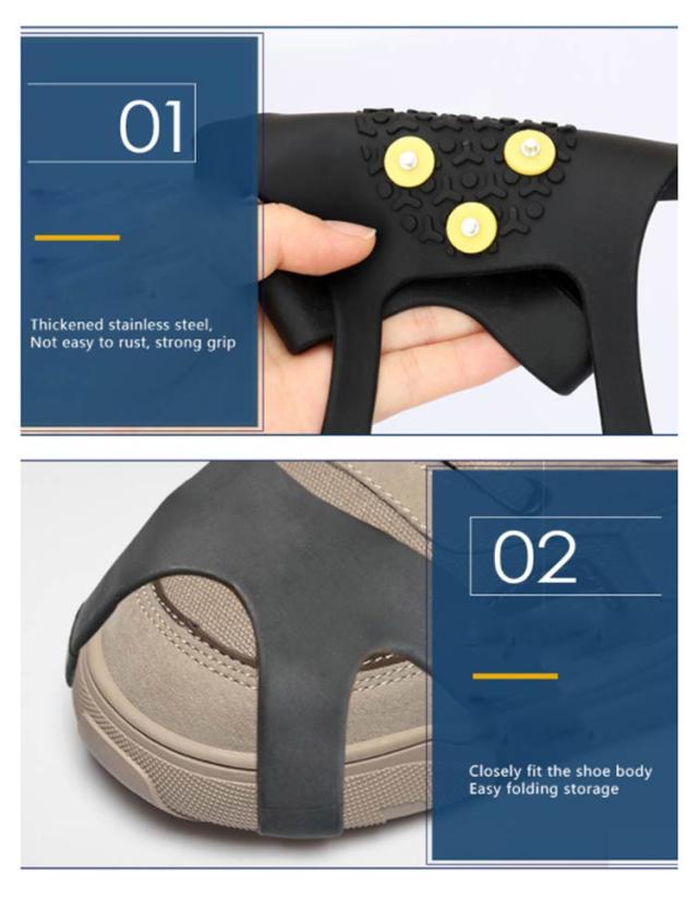 | 急な降雪時に使用できる着脱式の左右兼用スパイクです。 前半部分は6つのピン、後半部分は4つのピン、雪上で滑りづらくて安心して歩けます。 高品質なTPE材質で、極低温でも硬化しにくく、問題なくご使用可能です。 軽くて耐久性があり、非常に弾力性のある材料で作られています。 装着はつま先とかかとにひっかけるだけで完了です。 軽くて薄くて小さいので持ち運びにも便利です。 着脱が簡単なので、通勤・通学・旅行などの際にも活躍します! | |