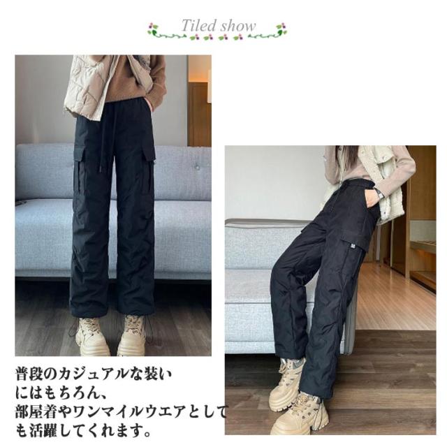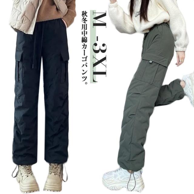 カーゴパンツ レディース 秋冬 中綿パンツ ハイウェスト 中綿 パンツ おしゃれ 暖かい 防寒ズボン ボトムス 可愛い 体型カバー カジュアル 防寒着 通勤 通学 ストリート系 おしゃれ M L XL 2XL 3XL