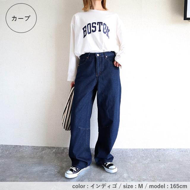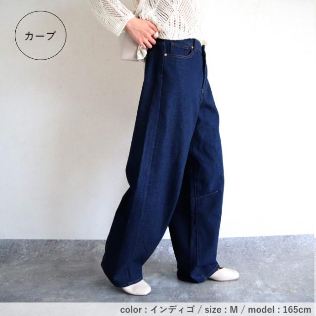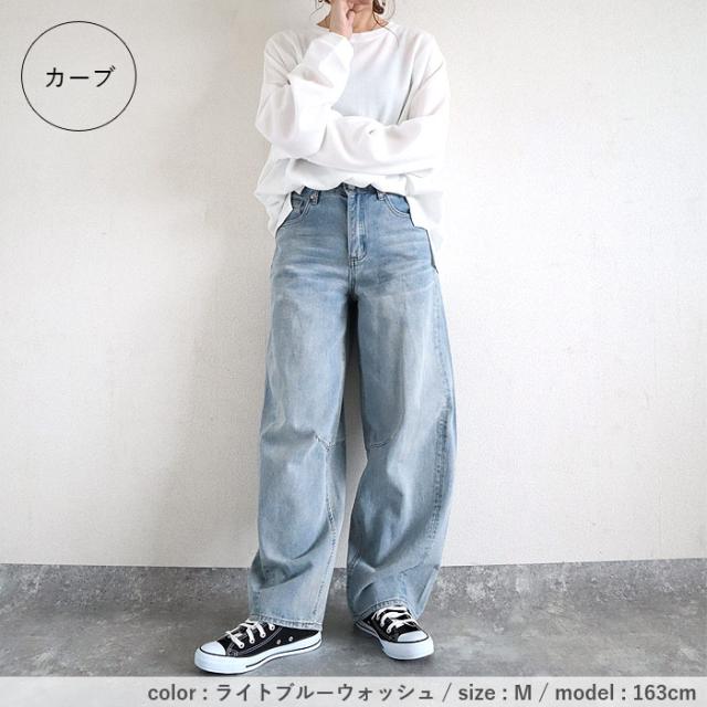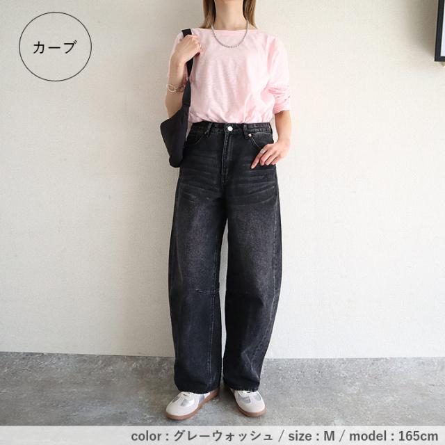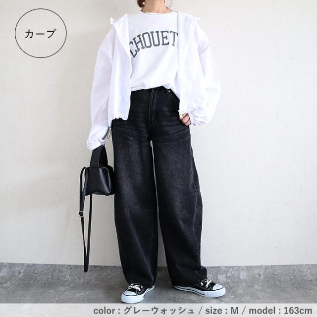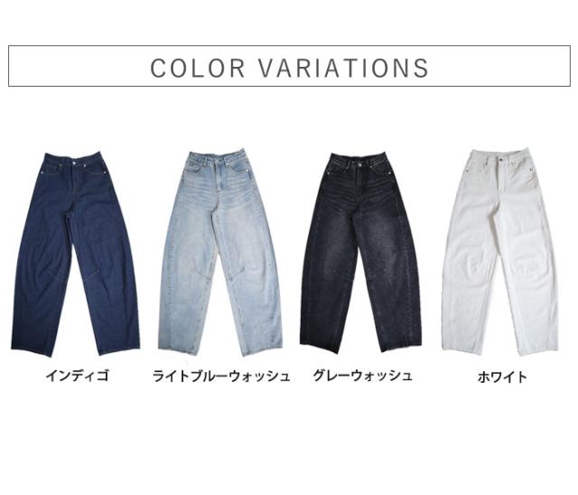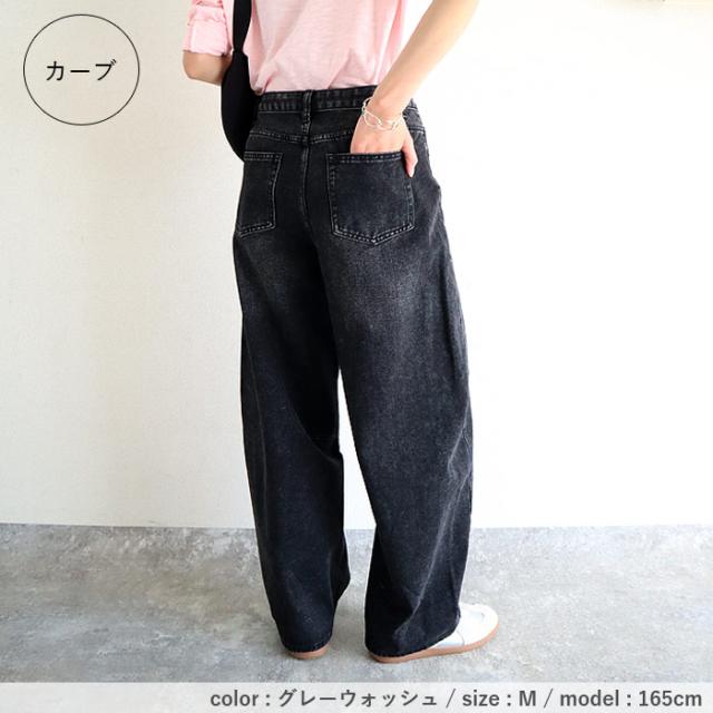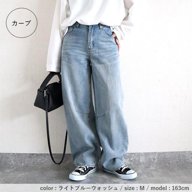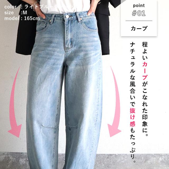 秋新作 レディース 黒 おしゃれ パンツ バレルパンツ ワイドパンツ デニム カーブパンツ 体型カバー ハイウエスト 脚長(送料無料)[郵3]^b473n^ ★