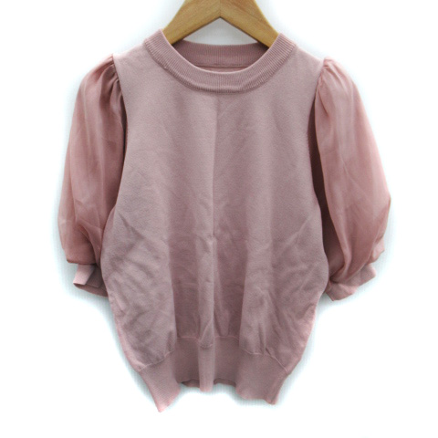 【中古】ビス ViS ニット カットソー 半袖 チュール 切替 F ピンクベージュ /SM2 レディース