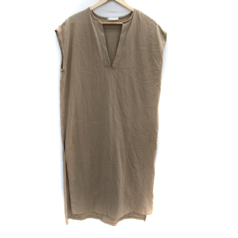 【中古】フィフス fifth ワンピース ロング丈 ノースリーブ スリットネック M ベージュ /SM14 レディース