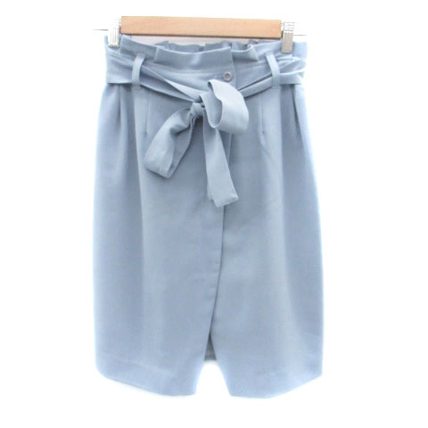 【中古】ビス ViS タイトスカート ひざ丈 リボンベルト付き M 水色 ライトブルー /HO26 レディース
